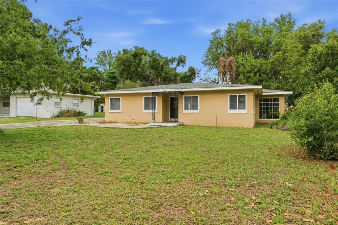One or more photo(s) has been virtually staged. Bring your vision and make this charming home your own! This 2-bedroom, 2-bath residence offers incredible potential with a spacious layout ready for your personal touch. The primary bathroom is currently unfinished, providing a great opportunity to customize and complete to your taste.Inside, you'll find a welcoming family room and kitchen centered around a cozy wood-burning fireplace, perfect for gathering and creating a warm, inviting atmosphere...One or more photo(s) has been virtually staged. Bring your vision and make this charming home your own! This 2-bedroom, 2-bath residence offers incredible potential with a spacious layout ready for your personal touch. The primary bathroom is currently unfinished, providing a great opportunity to customize and complete to your taste.Inside, you'll find a welcoming family room and kitchen centered around a cozy wood-burning fireplace, perfect for gathering and creating a warm, inviting atmosphere. The dining area features beautiful French doors that open to a large screened lanai, ideal for enjoying Florida evenings or entertaining family and friends.Additional highlights include a dedicated laundry and storage room, along with a convenient walkway connecting the home to a detached garage/storage space. The expansive driveway and generous yard provides plenty of room for parking, hobbies, or outdoor living.Ideally situated for those seeking a peaceful and scenic lifestyle, this home is just moments from local favorites like the historic Howey Mansion, the renowned Mission Inn Resort & Club for golf and spa experiences, and Blevins Patriot Park. Enjoy easy access to the North Lake Chain of Lakes for boating, fishing, and lakeside recreation. With nearby dining, community events, and outdoor activities, this location truly captures the charm and tranquility of small-town Florida living.